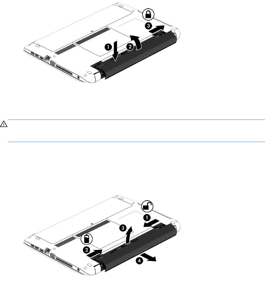 3. Nagnite bateriju (2) prema dole dok ne sjedne na mjesto i onda gurnite zasun za zaključavanje