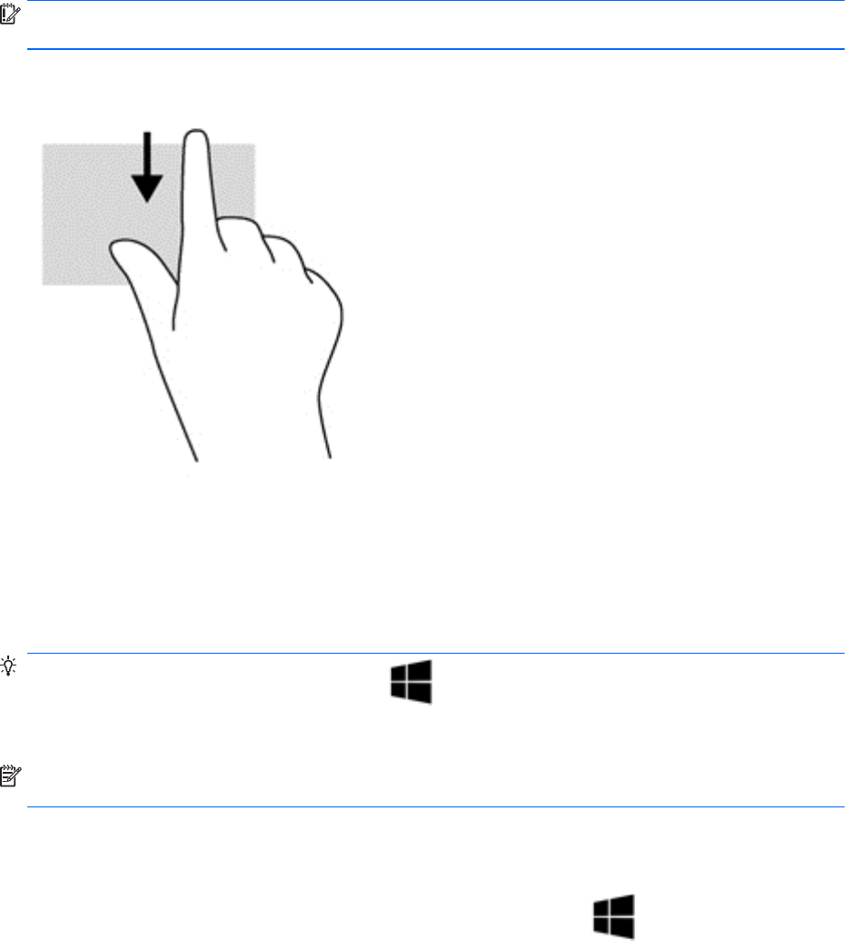 WAŻNE: Gdy aplikacja jest otwarta, skutek przesunięcia palcem od górnej krawędzi zależy od
