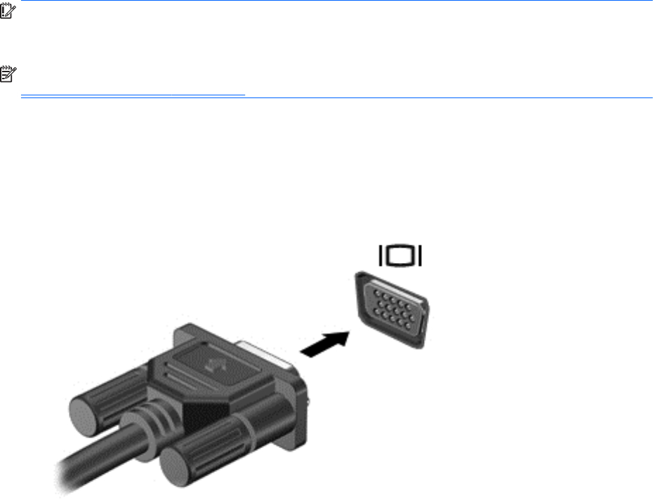 1. Podłącz kabel VGA z monitora lub projektora do portu VGA komputera, jak pokazano na