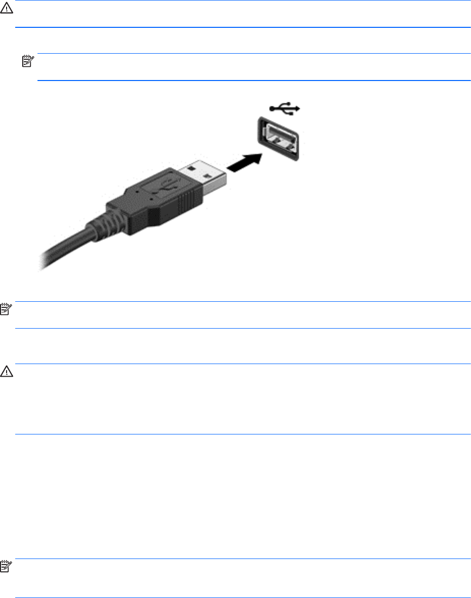 OSTROŻNIE: Aby zmniejszyć ryzyko uszkodzenia złącza portu USB, podczas podłączania