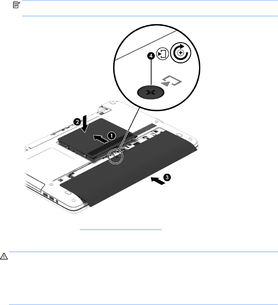 3. Wsuń większą pokrywę serwisową w kierunku wnęki baterii (3), aż zatrzaśnie się na swoim