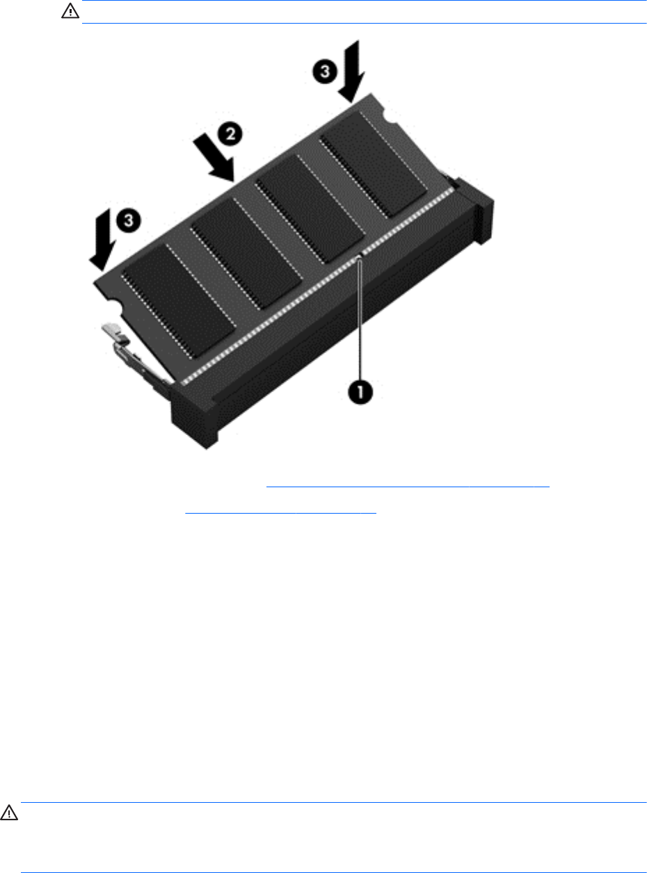 c. Delikatnie dociśnij moduł pamięci (3) z jego lewej i prawej strony aż do zatrzaśnięcia