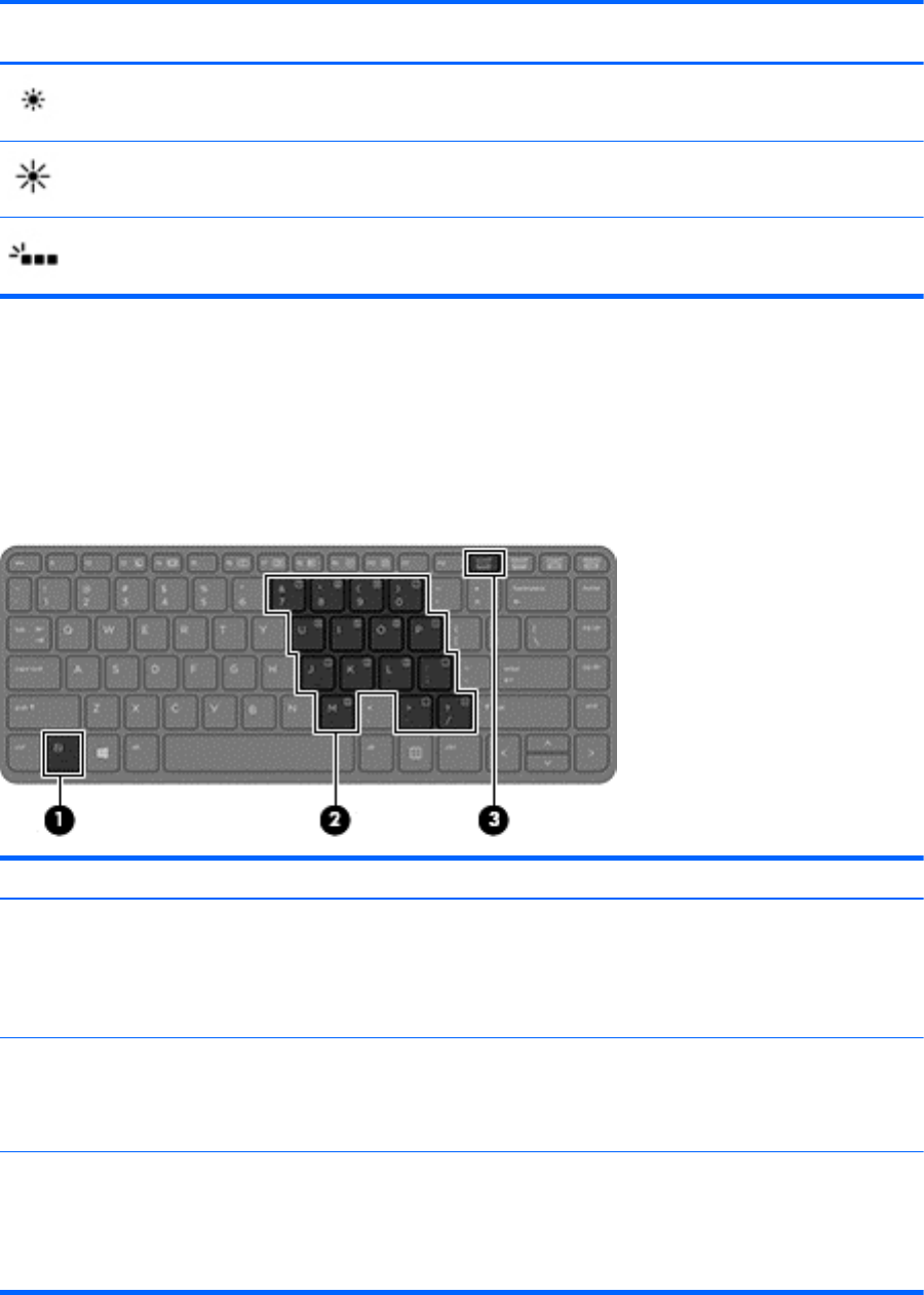 (1) Klávesa fn Zapíná a vypíná vestavěnou numerickou klávesnici, pokud je