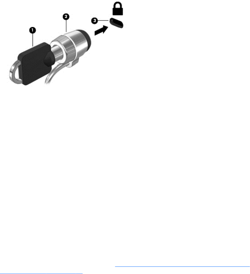 3. Vložte zámek kabelu do zásuvky bezpečnostního kabelu na počítači (3) a klíčem zamkněte