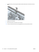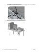 Slide the lip on the front end of the access panel under the lip on the front of the chassis (1) then