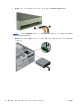 7. ドライブの背面右側にある緑色のリリース レバーをドライブの中央に向けて押し(1)、ドライ
