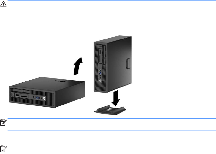 초소형 폼 팩터 컴퓨터는 HP 에서 선택 사양으로 구입할 수 있는 타워 받침대를 사용하여 타워 방향으