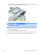 8. Vedä kiintolevyn takaosan lähellä olevaa vapautusvipua ulospäin (1). Työnnä vapautusvipua