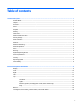 - power requirements, product description 5 processor, product description 1 product description audio 3 chipset 1 display panel 1 docking 5 Ethernet 4 external expansion 4 flash cache 2 graphics 2 hard drive 3 keyboard 5 memory module 2 microphone 3 MiniCard solid-state drive 2 operating system 6 pointing device 5 ports 5 power requirements 5 primary storage 3 processor 1 product name 1 security 6 serviceability 8 solid-state drive 3 video 3 wireless networking 4 product name 1 R recover options 109 recovery