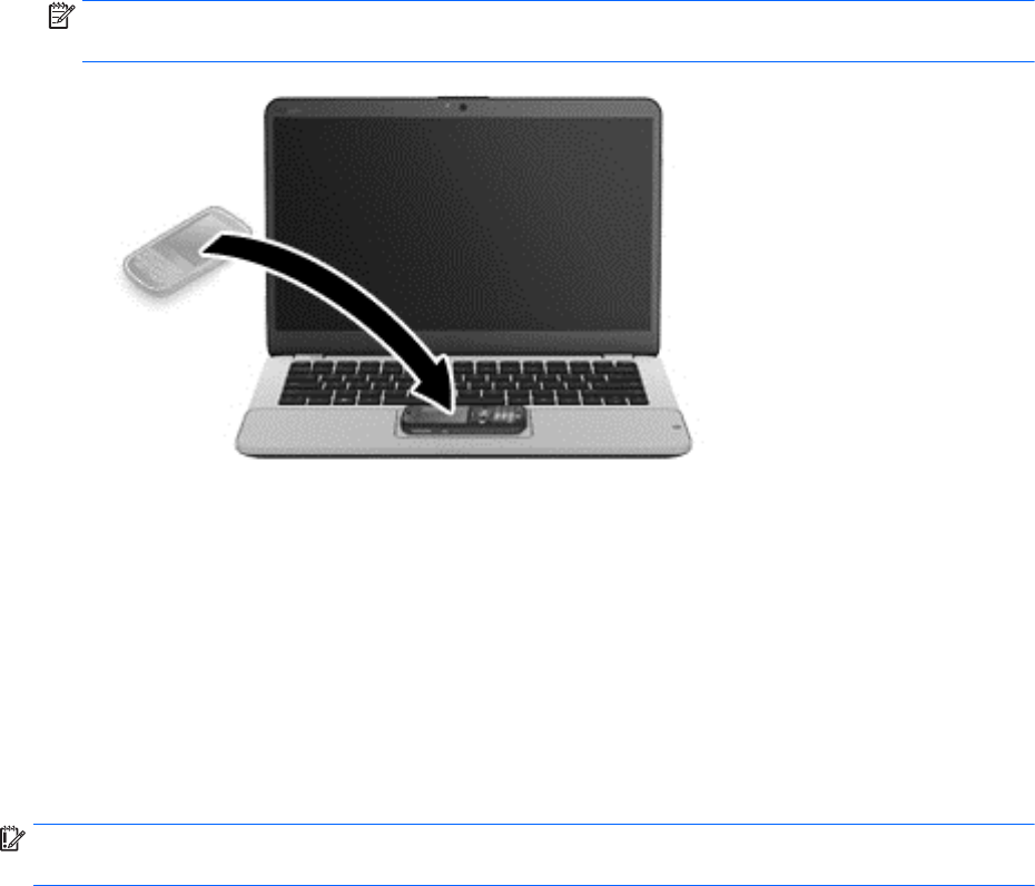 CATATAN: Antena NFC pada komputer Anda terletak di bawah Panel Sentuh. Untuk menemukan
