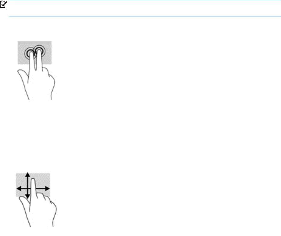 PASTABA: bakstelėjimu dviem pirštais atliekami tokie pat veiksmai kaip spustelėjimu dešiniuoju pelės