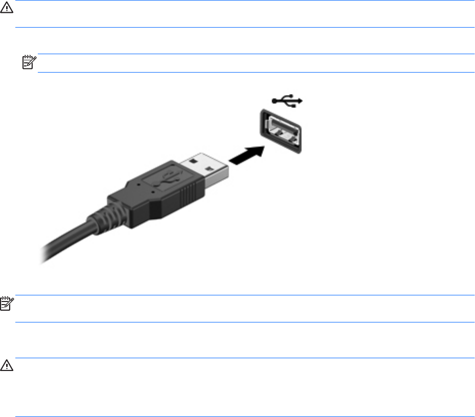 PRECAUCIÓN: Para reducir el riesgo de dañar un conector USB, no tire del cable para desconectar el