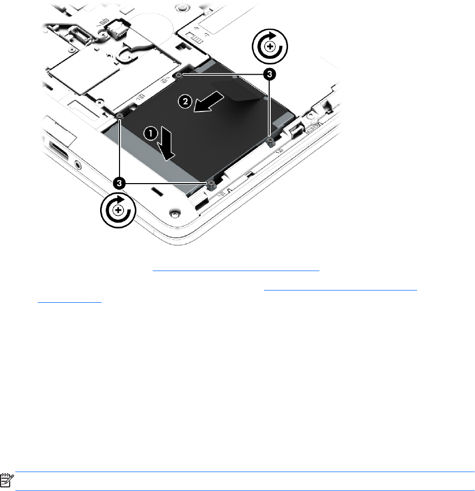 3. Ajuste los tornillos de la unidad de disco duro (3).
