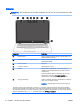 (5) Venstre TouchPad-knap Fungerer som venstre knap på en ekstern mus.