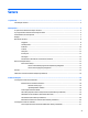 Alfabētiskais rādītājs A administratora parole 40 akumulatora indikators 6, 13 akumulatora strāva 34 akumulators atbrīvošanās 37 atlikušā uzlādes līmeņa parādīšana 35 enerģijas ekonomēšana 36 izlāde 35 nomaiņa 37 zemi akumulatora uzlādes līmeņi 36 apakšpuse 16 apkopes uzlīmes, novietojums 15 atbalstītie diski, atkopšana 55 atbrīvošanas fiksators, identificēšana 8 atkopšana atbalstītie diski 55 datu nesējs 58 diski 55, 58 HP Recovery datu nesēja lietošana 55 HP Recovery Manager 56 opcijas 56 sistēma 56 start