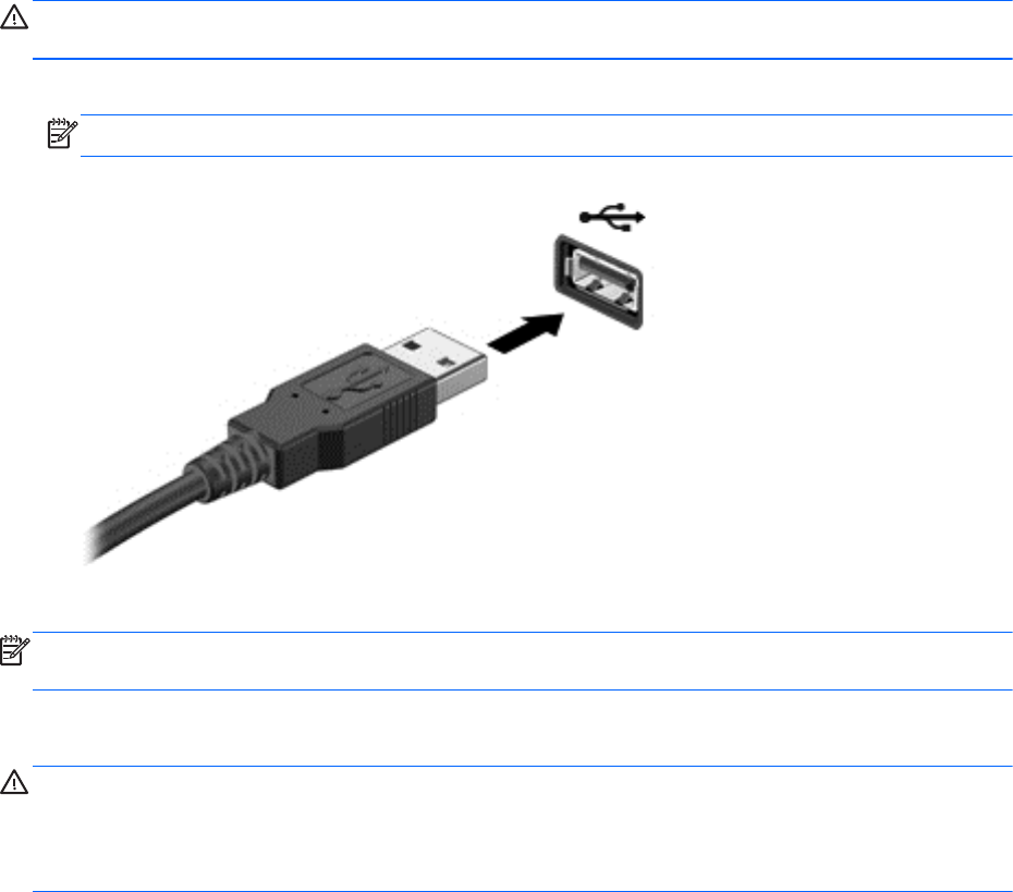 UPOZORNĚNÍ: Abyste zabránili poškození konektoru USB, používejte při připojování zařízení