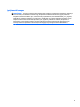 WLAN apsauga Kai nustatote WLAN arba jungiatės prie esamo WLAN, visada įgalinkite saugos funkcijas, kad apsaugotumėte savo tinklą nuo neteisėto naudojimo. WLAN viešose vietose (prieigos taškuose), pvz., kavinėse, parduotuvėse ir oro uostuose, gali būti visiškai neapsaugotas. Jei jums svarbi kompiuterio sauga, prisijungę prie viešosios prieigos taško tikrinkite tik nekonfidencialų el. paštą ir naršydami internete būkite atsargūs.
