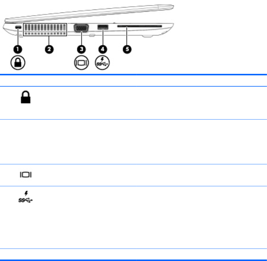 Port pengisian daya USB 3.0 (dialiri daya) Menghubungkan perangkat USB opsional, seperti keyboard,