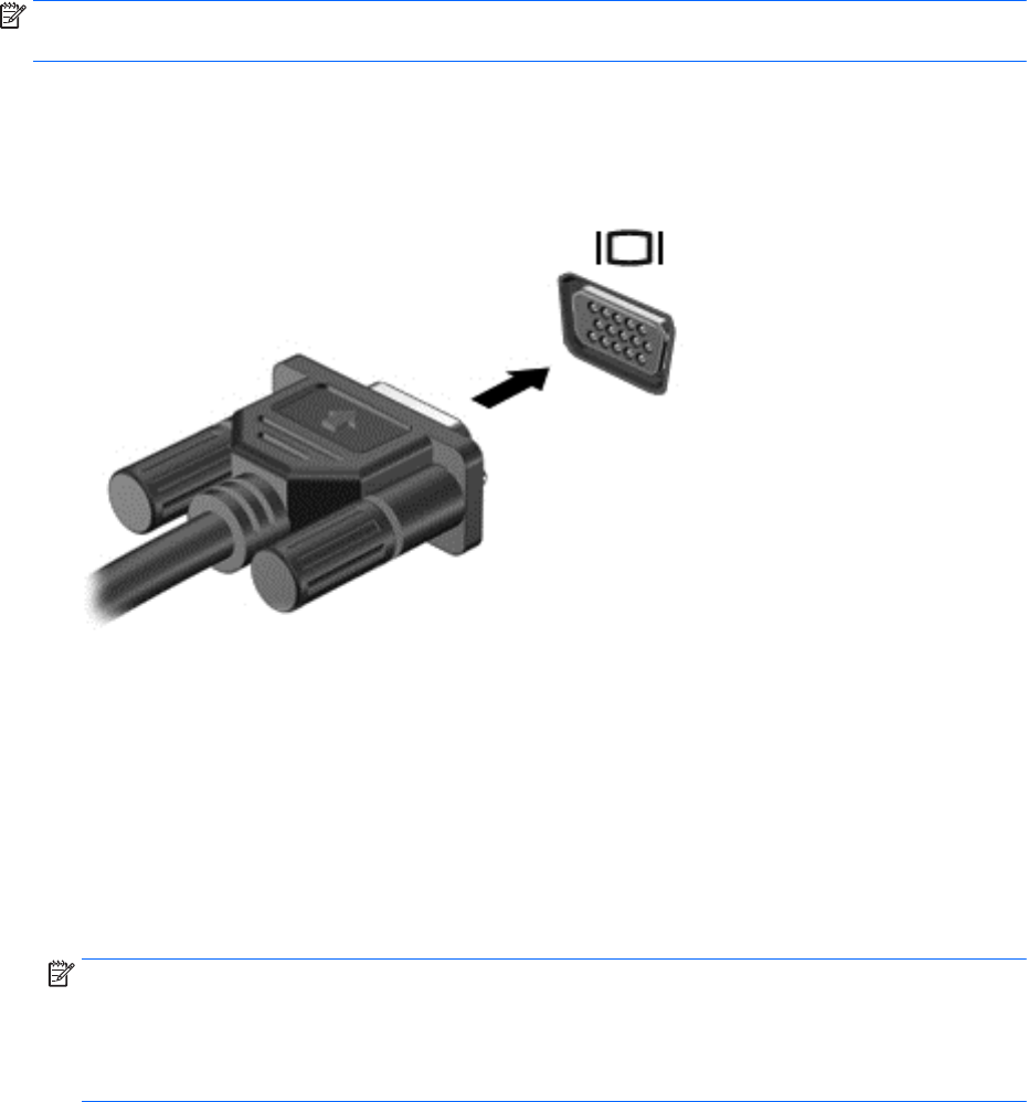 - Menghubungkan perangkat video menggunakan kabel VGA