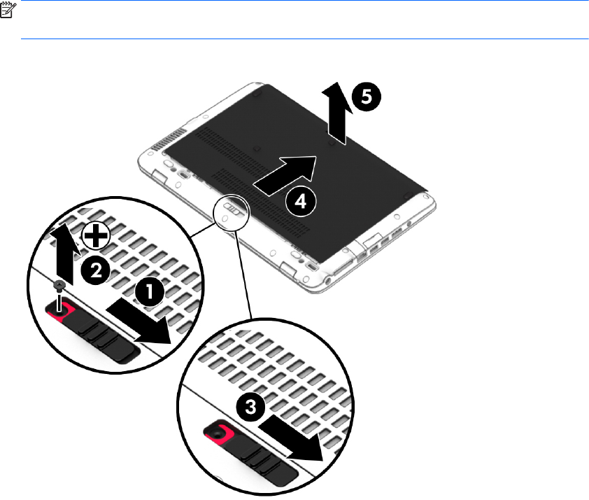 a. Dengan kait pelepas penutup akses menghadap Anda, geser kait pelepas penutup akses ke kanan