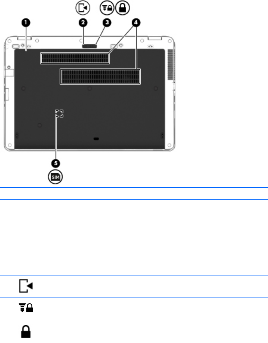 (1) Service door Provides access to the hard drive bay, the wireless LAN