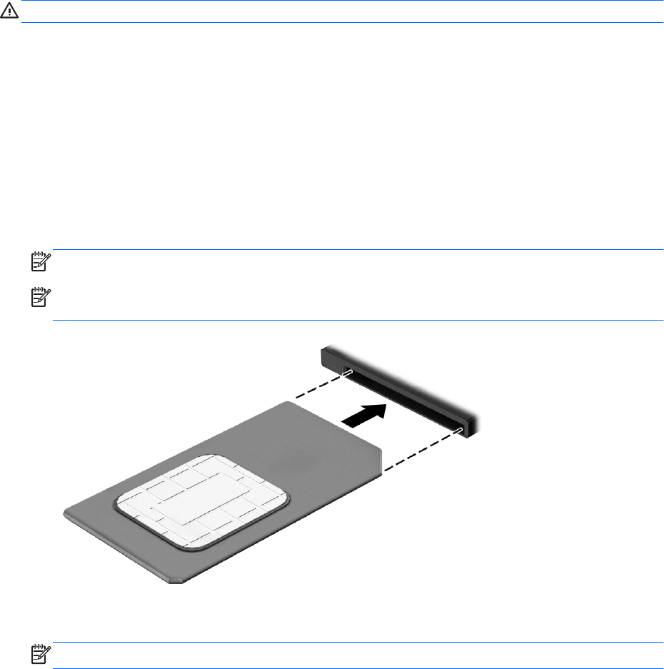 CAUTION: To prevent damage to the connectors, use minimal force when inserting a SIM.