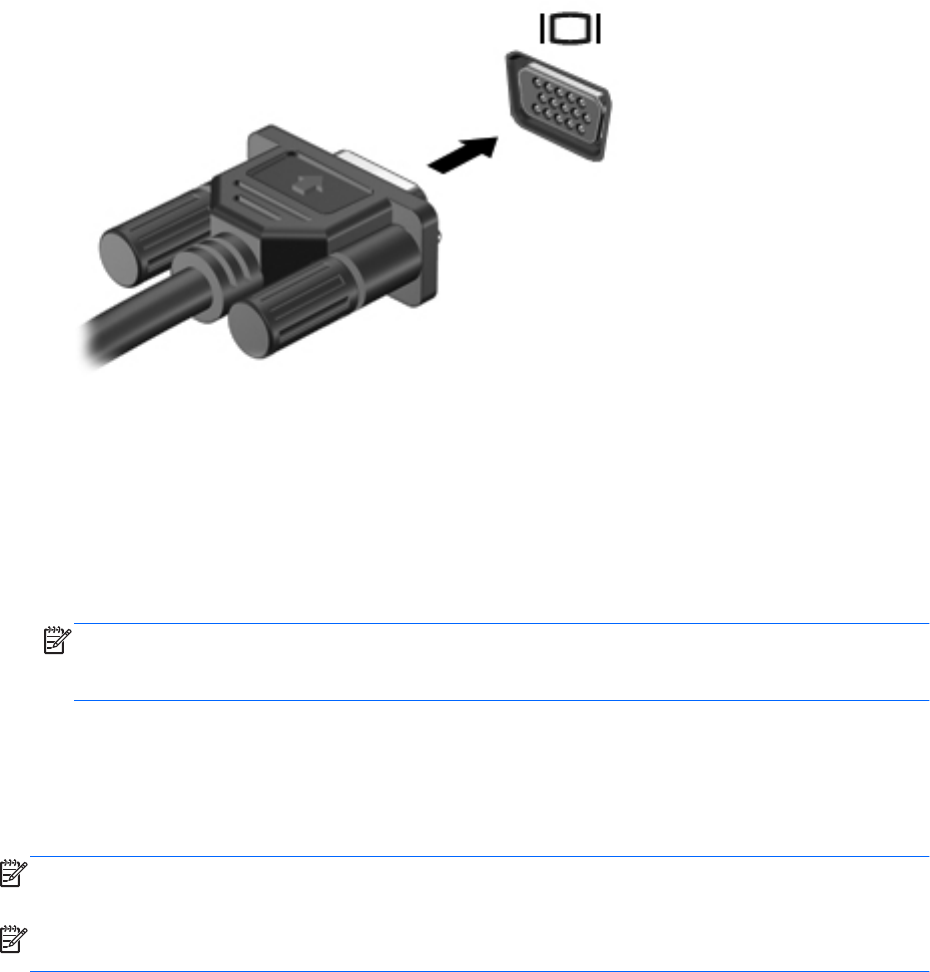 1. To connect a VGA display device, connect the device cable to the external monitor port.