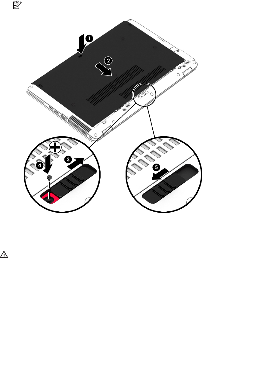 4. With the battery bay toward you, slide the service door release latch to the right (3), and if you choose