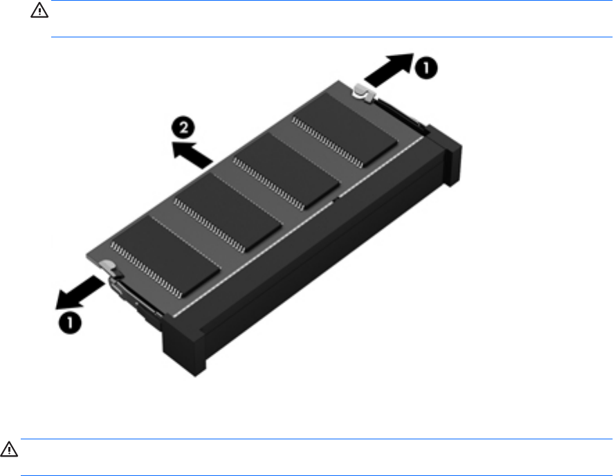 b. Grasp the edge of the memory module (2), and then gently pull the memory module out of the