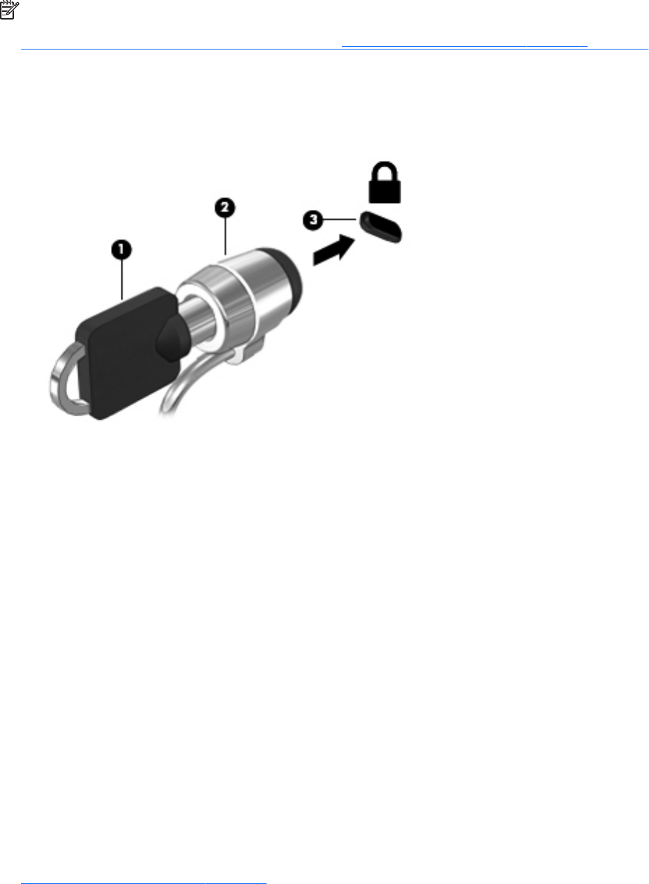 3. Stecken Sie das Kabelschloss in die Öffnung für die Diebstahlsicherung am Computer (3), und