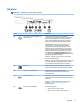 (5) RJ-45 (желі) ұясы/шамдары Желілік кабелді қосады.