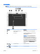 (4) USB 3.0-ladeport (strømførende) Brukes til tilkobling av en ekstra USB-enhet, for eksempel