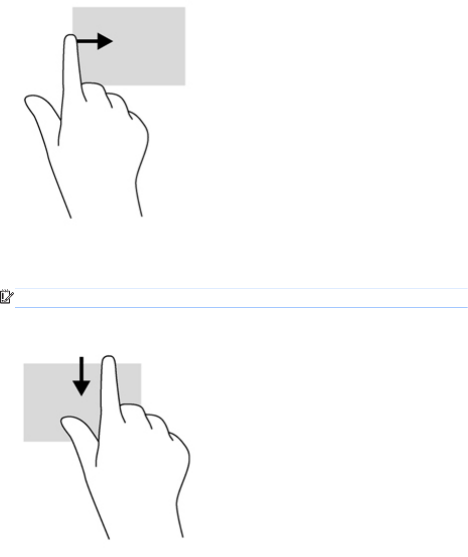 VIKTIG: Når en app er åpen, vil øvre kantsveipbevegelse variere, avhengig av appen.