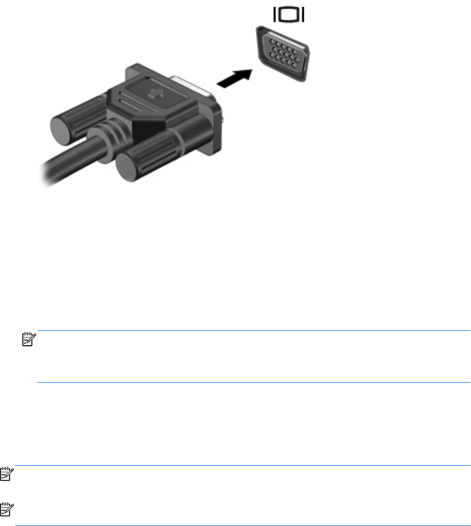 1. Koble VGA-kabelen fra skjermen eller projektoren til VGA-porten på datamaskinen som vist.