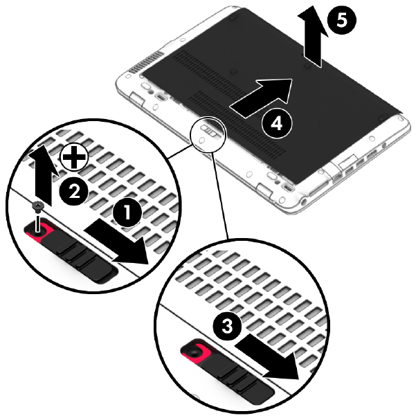 2. Skyv servicedekselet mot fronten av datamaskinen (4) og løft (5) for å ta dekselet av.
