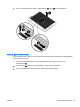 6. Løsne de 4 skruene i harddisken (1). Trekk i harddiskklaffen (2) for å koble fra harddisken.
