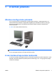 1 A termék jellemzői Általános konfigurációs jellemzők A HP Compaq minitorony felszereltsége a típustól függően változhat. A számítógép hardver- és szoftvereszközeinek felsorolása a diagnosztikai segédprogram futtatásával érhető el (csak egyes típusokon). A segédprogram használatával kapcsolatban további útmutatást a Hibaelhárítási útmutató tartalmaz. 1-1 ábra HP Compaq dx7500 mikrotorony MEGJEGYZÉS: Az Ön számítógépének meghajtókonfigurációja eltérhet a fenti ábrán bemutatottól.