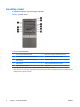 A hátlap részei 1-4 ábra A hátlap részei 1-3 táblázat A hátlap részei 1 Tápkábel csatlakozója 8 PS/2 egér csatlakozója (zöld) 2 Feszültségkapcsoló 9 Kimeneti aljzat a saját áramellátással rendelkező audioeszközökhöz (zöld) 3 Audioeszközök bemeneti aljzata (kék) 10 Mikrofoncsatlakozó (rózsaszín) 4 RJ-45-ös hálózati csatlakozó 11 Univerzális soros busz (USB) portok 5 1394 port 12 DVI monitor csatlakozója (fehér) 6 VGA monitor csatlakozója (kék) 13 Digitális hangbemenet (fekete) 7 Dig