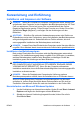 Kurzanleitung und Einführung Installieren und Anpassen der Software HINWEIS: Wenn der Computer mit Windows Vista geliefert wurde, werden Sie aufgefordert, den Computer vor der Installation des Betriebssystems bei HP Total Care zu registrieren. Es wird ein kurzer Film und anschließend das OnlineRegistrierungsformular gezeigt. Füllen Sie das Formular aus, klicken Sie auf die Schaltfläche Begin (Beginnen), und folgen Sie den Anleitungen auf dem Bildschirm.