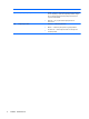 Компонент Описание (3) ● Синий — включено вcтроенное устройство беспроводной связи, например устройство беспроводной ЛВС, модуль HP для высокоскоростной беспроводной связи и/или устройство Bluetooth®. ● Желтый — все устройства беспроводной связи выключены. ● Светится — компьютер включен. ● Мигает — компьютер находится в ждущем режиме. ● Не светится — компьютер выключен или находится в спящем режиме.