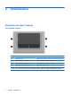 2 Компоненты Компоненты (вид сверху) Сенсорная панель Компонент Описание (1) Сенсорная панель* Перемещение указателя, выбор и запуск объектов на экране. (2) Левая кнопка сенсорной панели* Выполняет функцию левой кнопки мыши. (3) Правая кнопка сенсорной панели* Выполняет функцию правой кнопки мыши. (4) Зона прокрутки сенсорной панели Прокрутка вверх или вниз. *В данной таблице приведены параметры, установленные производителем.