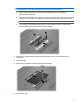 Tilføjelse eller udskiftning af et hukommelsesmodul Computeren har ét hukommelsesmodulrum, som er placeret i bunden af computeren. Du kan opgradere computerens hukommelseskapacitet ved at udskifte det eksisterende hukommelsesmodul i slotten til hukommelsesmodulet. ADVARSEL! For at mindske risikoen for elektrisk stød og beskadigelse af udstyret, skal du koble netledningen fra og fjerne alle batterier, før du installerer et hukommelsesmodul.