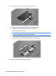 Muistimoduulin lisääminen tai vaihtaminen Tietokoneessa on yksi muistimoduulipaikka, joka sijaitsee tietokoneen pohjassa. Tietokoneen muistikapasiteettia voi päivittää vaihtamalla muistipaikan muistimoduulin. VAARA Sähköiskujen ja laitteiston vaurioitumisen välttämiseksi irrota virtajohto ja kaikki akut ennen muistimoduulin asentamista. VAROITUS: Staattinen sähkö voi vahingoittaa elektronisia komponentteja.