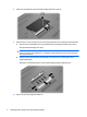 Hinzufügen oder Austauschen eines Speichermoduls Der Computer verfügt über ein Speichermodulfach an seiner Unterseite. Die Speicherkapazität des Computers kann durch Ersetzen des vorhandenen Speichermoduls im Speichersteckplatz aufgerüstet werden. VORSICHT! Um die Gefahr eines Stromschlags und das Risiko von Hardwareschäden zu reduzieren, ziehen Sie das Netzkabel ab, und entfernen Sie alle Akkus, bevor Sie ein Speichermodul installieren.