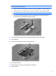 Sette inn eller bytte ut minnemoduler Maskinen har én minnemodulbrønn, og den er plassert på undersiden av maskinen. Minnekapasiteten til datamaskinen kan oppgraderes ved å bytte ut den eksisterende minnemodulen i minnemodulsporet. ADVARSEL: Koble fra strømledningen og ta ut alle batterier før du installerer en minnemodul, for å unngå elektrisk støt og skade på utstyret. FORSIKTIG: Utlading av statisk elektrisitet kan skade elektroniske komponenter.