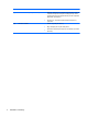 Element Opis (3) ● Niebieski: Wbudowane urządzenie bezprzewodowe, takie jak urządzenie bezprzewodowej sieci lokalnej (WLAN), moduł szerokopasmowej sieci bezprzewodowej HP i/lub urządzenie Bluetooth®, jest włączone. ● Bursztynowy: wszystkie urządzenia bezprzewodowe są wyłączone. ● Świeci: komputer jest włączony. ● Miga: komputer jest w trybie wstrzymania. ● Nie świeci: komputer jest wyłączony lub znajduje się w stanie hibernacji.