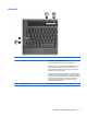 Przyciski, przełączniki i głośnik Element Opis (1) Włącza i wyłącza funkcje komunikacji bezprzewodowej, nie ustanawia jednak połączenia bezprzewodowego. Przycisk komunikacji bezprzewodowej UWAGA: Musisz skonfigurować sieć bezprzewodową lub uzyskać do niej dostęp w celu nawiązania połączenia bezprzewodowego. (2) Przycisk zasilania ● Gdy komputer jest wyłączony, naciśnij przycisk, aby go włączyć. ● Gdy komputer jest włączony, naciśnij przycisk, aby uruchomić hibernację.
