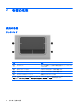 2 各部の名称 表面の各部 タッチパッド 名称 説明 (1) タッチパッド* ポインタを移動して、画面上の項目を選択したり、アクティブに したりします (2) 左のタッチパッド ボタン* 外付けマウスの左ボタンと同様に機能します (3) 右のタッチパッド ボタン* 外付けマウスの右ボタンと同様に機能します (4) タッチパッドのスクロール ゾーン 画面を上下にスクロールします *この表では初期設定の状態について説明しています。ポインティング デバイスの設定を表示したり変更したりするには、 [スタート]→[コントロール パネル]→[プリンタとその他のハードウェア]→[マウス]の順に選択します。 2 第 2 章 各部の名称