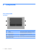 2 Components Top components TouchPad Component Description (1) TouchPad* Moves the pointer and selects or activates items on the screen. (2) Left TouchPad button* Functions like the left button on an external mouse. (3) Right TouchPad button* Functions like the right button on an external mouse. (4) TouchPad scroll zone Scrolls up or down. *This table describes factory settings.