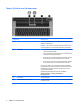 Komponenten an der Vorderseite 6 Komponente Beschreibung (1) Audioausgangsbuchse (Kopfhörer) Zum Anschließen von optionalen Stereo-Aktivlautsprechern, Kopfhörern, Ohrhörern, einem Headset oder zum Verbinden mit dem Audioeingang eines Fernsehgeräts. (2) Audioeingangsbuchse (Mikrofon) Zum Anschließen eines optionalen Computer-Headset-, StereoArray- oder Monomikrofons.